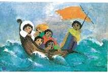 the lake. They got into the boat and set out. Suddenly a great storm began raging