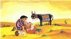 bandaged his wounds. Then he put the man on his own horse and took him to an