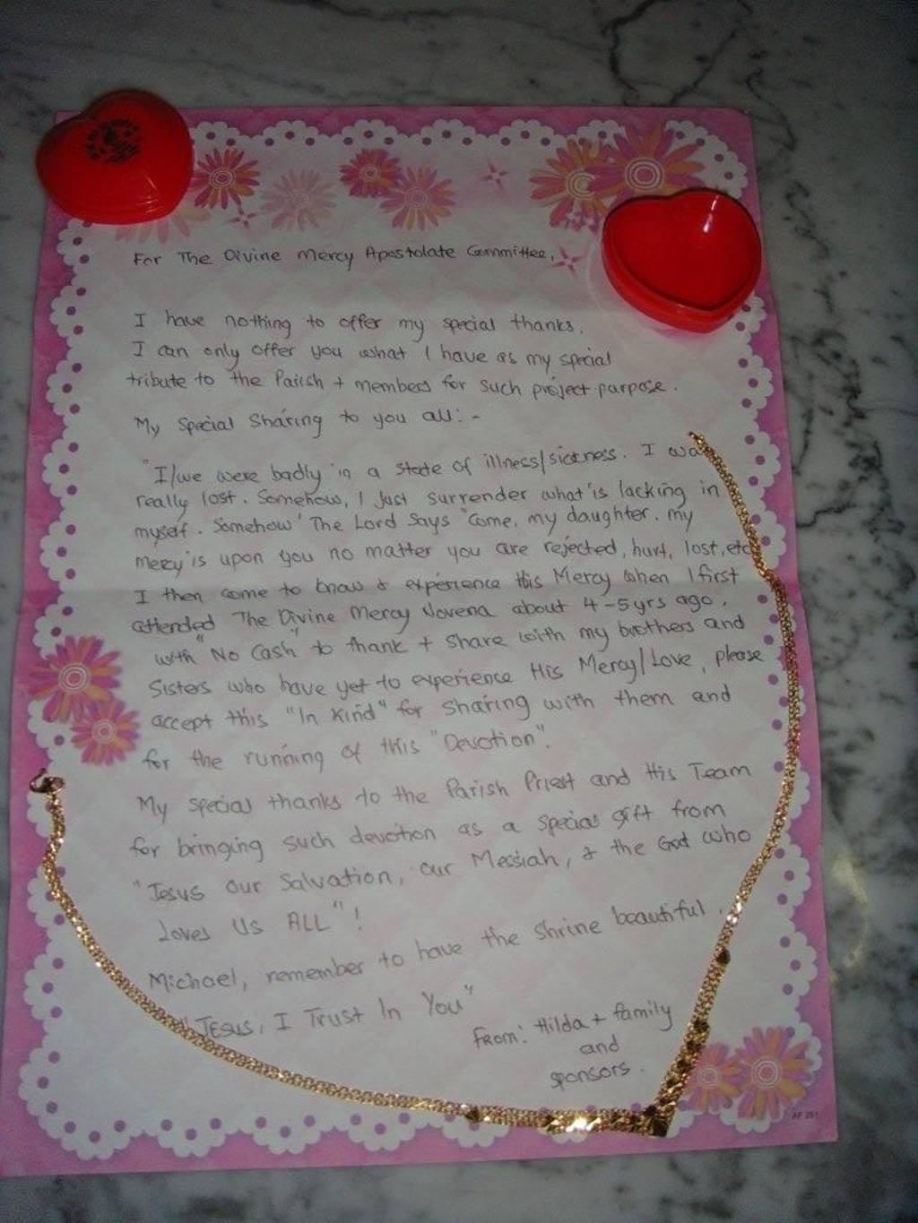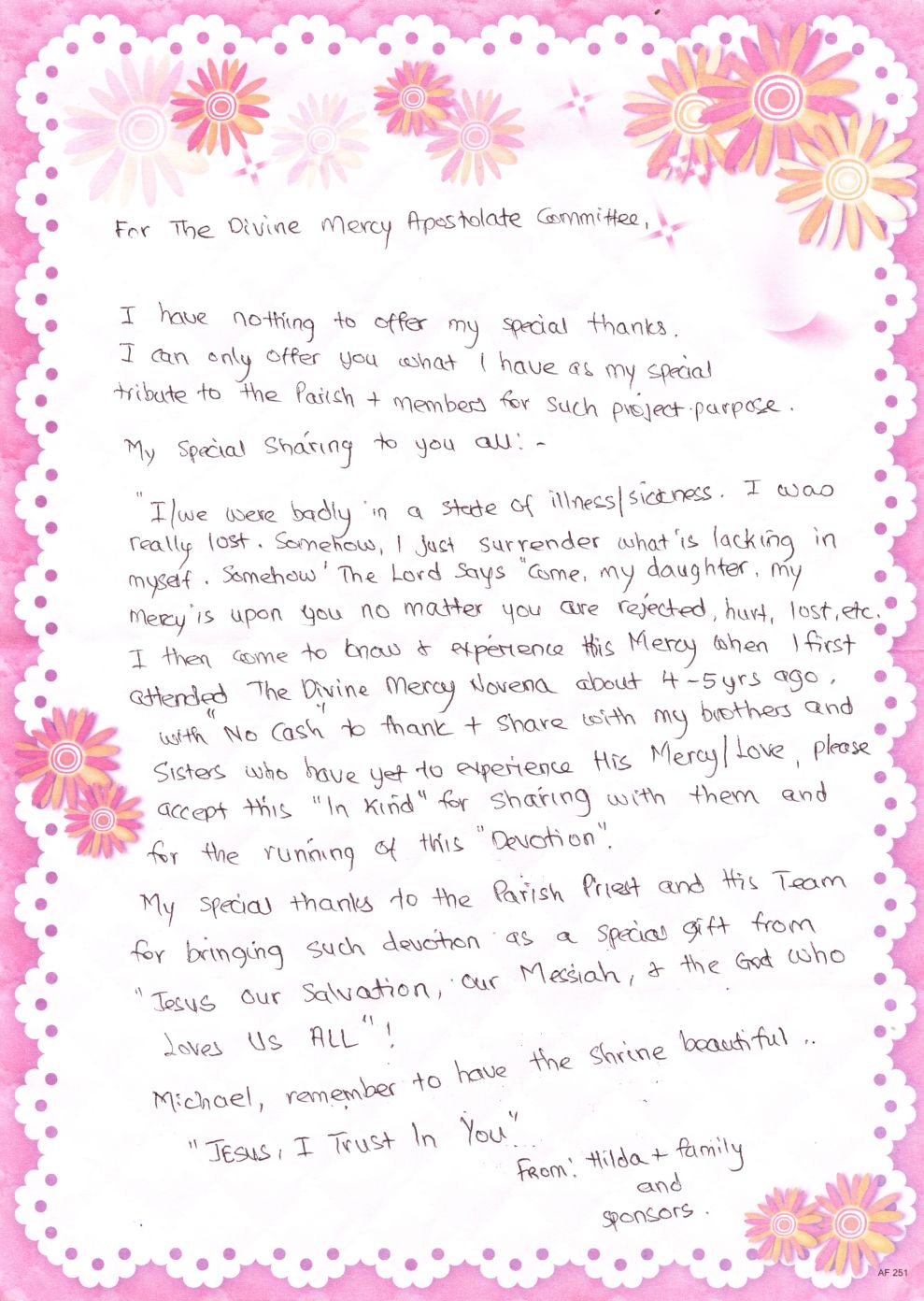 Devotion in the Church of St Peter’s, we received a letter …