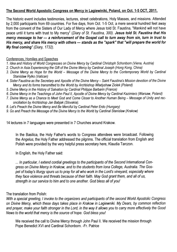 More infor on http://www.worldapostoliccongressonmercy.org/spip.php?article1528