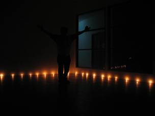 gathering with songs... in the dark, surrounded by the lights from 100 candles.